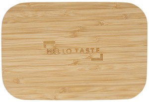The innovative Bamboo Fiber Lunch Box with Cutting Board Lid piece features a bamboo lid that doubles as a cutting board. The lid has a silicone lining and silicone band to ensure food is kept secure in the container. This container is not suitable for liquids and must be used for solid food only. This item is not suitable to be used in the microwave. Due to the nature of the bamboo material, variations in laser imprinting quality may occur. Through a partnership with 1% For The Planet, one percent of sales of this and all EcoSmart products will be donated to nonprofits dedicated to protecting the planet. Packaged in a FSCr-certified giftbox. 2.05" D x 4.80" W x 7.08" H