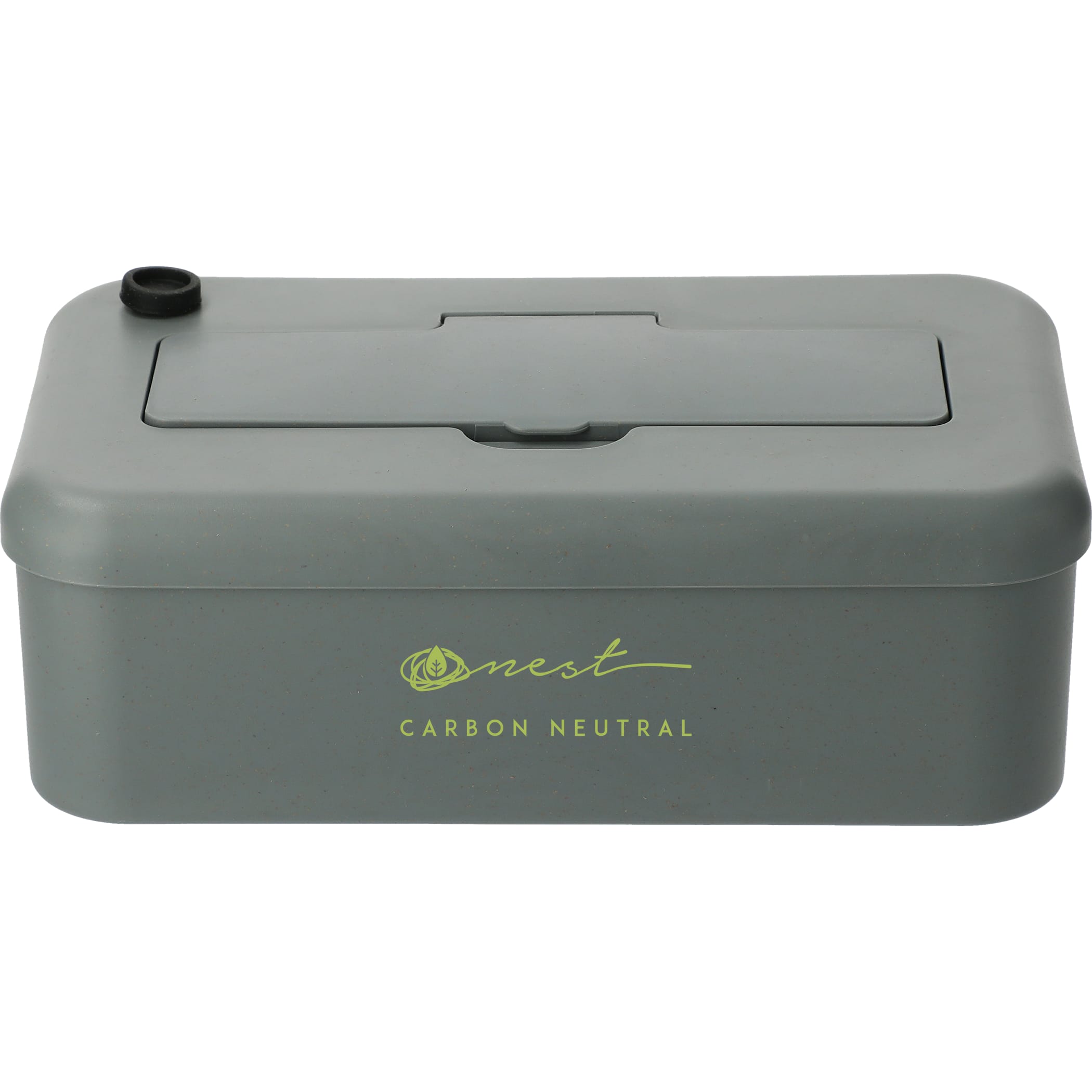The Bamboo Fiber Lunch Box with Utensils is made from bamboo fiber which aids in cutting down the down the use of plastic. The set features built in utensil storage and a divider inside so multiple foods can be stored. Three-piece utensil set included. Through a partnership with 1% For The Planet, one percent of sales of all EcoSmart® products are donated to environmental nonprofits. Not microwave safe. 2.50" D x 4.50" W x 7.50" H