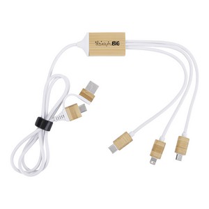 BambooTunes 5-in-1 Charging Cable features dual USB-A and Type-C inputs with a maximum output of 2A. 1" Diameter x 1.5625" H