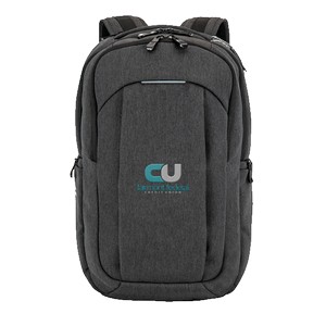 This backpack is made of 600D heathered polyester and is a 840D/210D lined tech backpack. Features a front pleated design with a hidden zipper pocket and reflective accent. It has a spacious main compartment with internal pockets, front organization pocket with key fob, two side zipper pockets with stretchy mesh gusset for tech or water bottles, and a top felted media pocket. Includes a decorative Basecamp® dog tag. Complies with Prop 65. 6" D x 19.5" H x 14" W