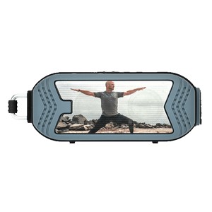 Rugged waterproof wireless speaker with built-in microphone. IPX6 waterproof, shock and dust resistant; carabiner; charge time: approx. 3 hrs.; playtime: approx. 5 hrs.; li-ion battery; charging cable included. 2.6875" D x 2.25" H x 6.875" W