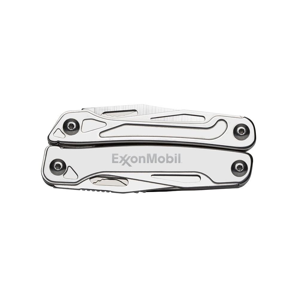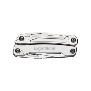 11-in-1 stainless steel multi-tool with needle nose pliers, pliers, wire cutter, screwdriver, saw, letter opener, flathead screw driver, bottle opener, knife, can opener, and file. Easy carrying with pocket clip and nylon pouch. 6.25" D