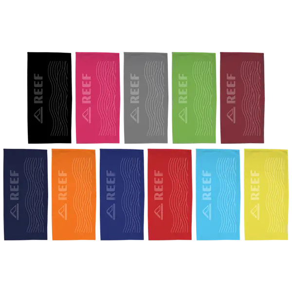 BEST SELLER! Our Basic Weight towel is ideal for budget minded companies or organizations and is sure to bring new life to your logo. Tone on Tone decorating was first created in 2003 and after over twenty years, colored beach towels are still our most popular category. Present your brand in a compelling, elegant and understated way. 30" x 60". 10.5 lbs./doz. 30" W x 60" L