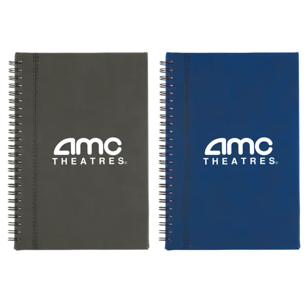 Spiral bound 100 ivory sheet lined notebook; soft touch PU cover with front stitch detail. 8.5" H x 6" W