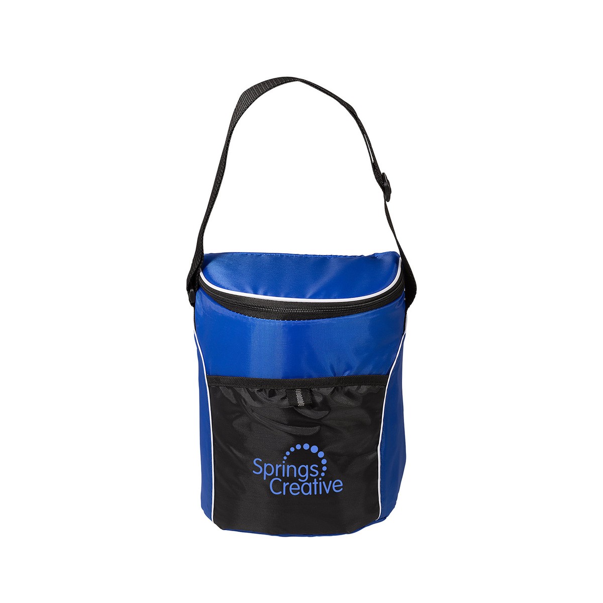 210D Polyester with PU backing exterior and PE foam and PEVA insulation. Top zipper closure. Front open pocket (7.25"w x 7"h). Adjustable web carry strap (1"w x 20"l at shortest, 39.25"l at longest). Holds 12 cans. Hand-wash only. Recommended weight tolerance: 13 lbs. 9.0000" W x 10.0000" H x 6.0000" D