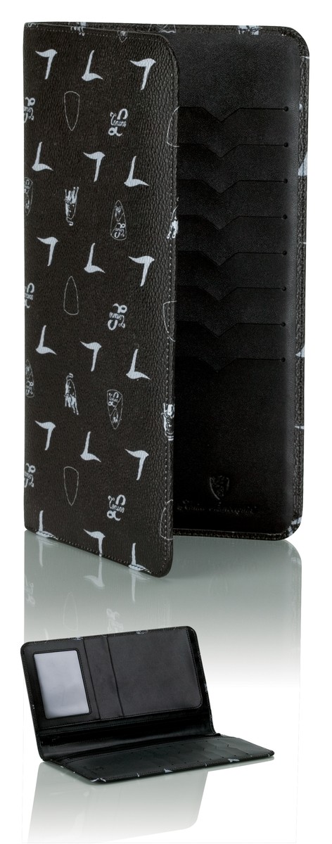 Signature Lamborghini monogram, travel wallet features eight card pockets, ID window, and ticket and travel document holder, additional storage areas and zip pockets. Complies with Prop 65. 5" W x 9" H x 3 1/4" D