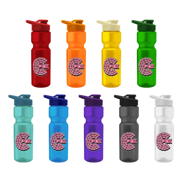 When hydration calls, the Blazer answers—with bold colors, a big 28 oz capacity, and a clean, clear design that means business (and a little bit of fun). This transparent bike bottle is built to keep up with your hustle—whether you're powering through a workout, a long commute, or just the Monday meeting marathon. The snap-on, drink-thru lid makes sipping simple, while the mix & match color combos let your brand take center stage. It's made right here in the USA, crafted from BPA-free materials, and fully FDA compliant—because looking good and doing good should go hand in hand. Just remember: this bottle prefers the hand-wash life and absolutely skips the microwave. For brands that like to move, the Blazer brings the energy. 2.875" W x 2.875" L x 9.75" H
