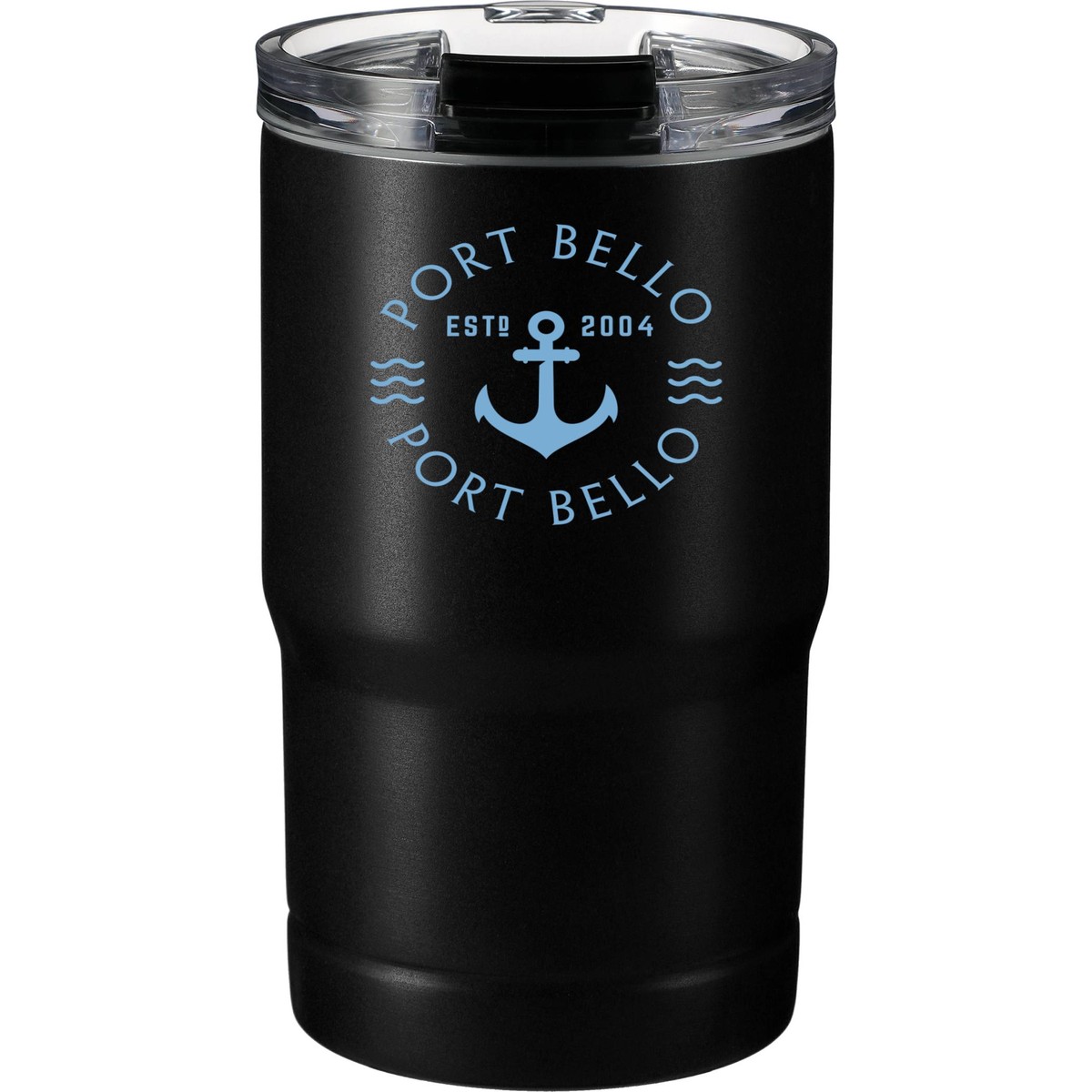 The Bullet Bluff 12oz has a versatile two-in-one design that doubles as both a tumbler and a drink insulator. It features double-wall construction with copper vacuum insulation to keep your beverages hot for up to 5 hours or cold for up to 15 hours. This item comes with a clear, screw-on, spill-proof lid that has a secure flap-seal closure. The Bullet Bluff Vacuum Tumbler and Cooler 12oz is hand-wash only and fits most standard cup holders. Plus, it has a fine-grit coating that gives it a pleasant, natural texture. 3.21" D x 3.21" W x 5.63" H