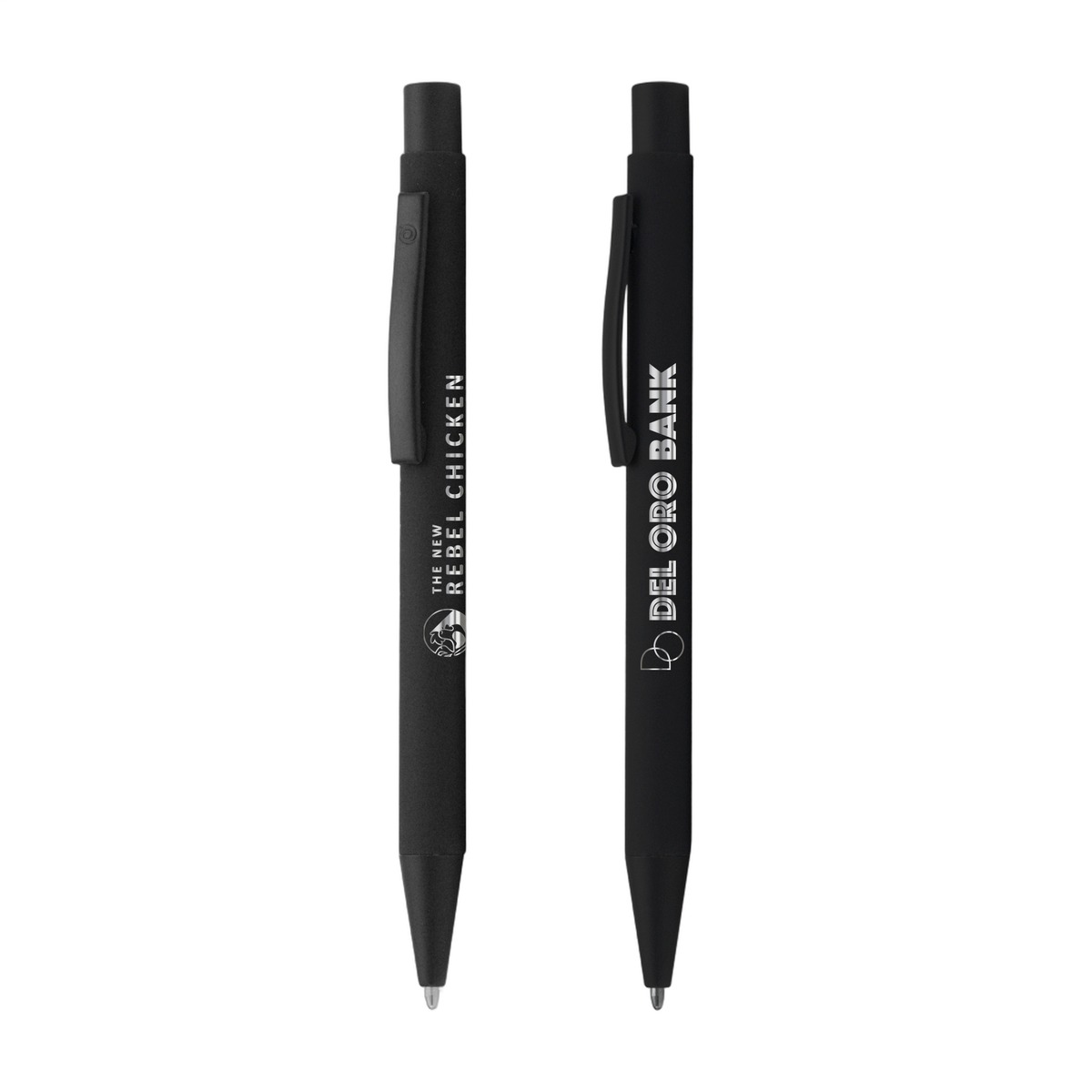 The Bowie Black Softy metal ballpoint pen features a trendy rubberized finish and a smooth writing high capacity cartridge. A black trim, clip, and accents provide a dramatic effect that makes artwork pop! . An excellent value to make a great impression. Complies with Prop 65. 5.37" W x 0.39" D