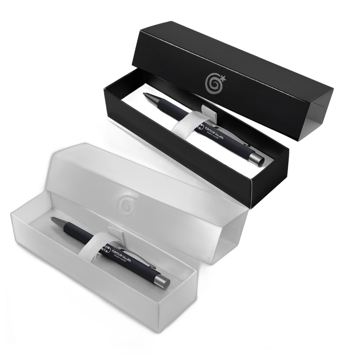 The ever-popular Bowie soft-touch rubberized metal ballpoint makes quite the impression as a gift item. Customize the Bowie pen with a full color, photo-quality imprint with our innovative ColorJet™ printing capabilities. The gift box is available in Matte White or Gloss Black. The black box features silver Goldstar swirl. The stylish Bowie pen features a smooth writing high capacity cartridge, available in Black ink or Blue ink. The sleek pen and premium gift box are perfect for corporate events and holiday gifts! Complies with Prop 65. 6.72" H x 2.11" W x 1.41" D