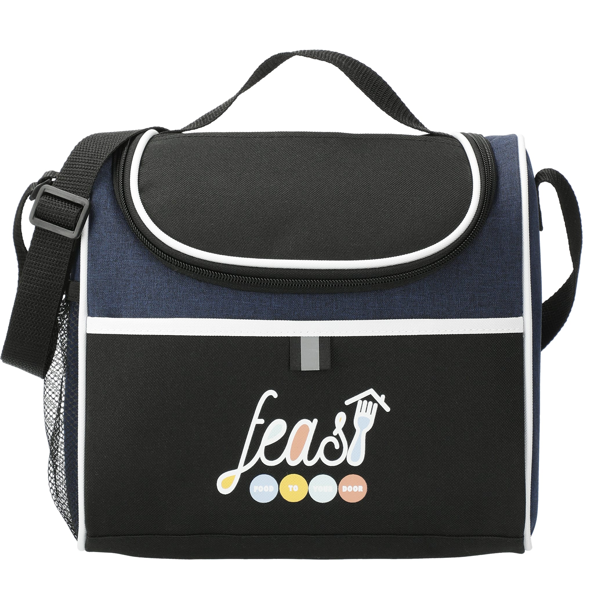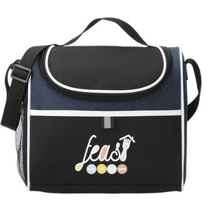 The Break Time Lunch Cooler offers a spacious main compartment with insulated PEVA lining, a side mesh pocket for your water bottle or extra snacks, and two slip pockets located on the front and top. It features durable PolyCanvas construction and has multiple decorating locations to showcase your logo. With a top grab-handle and adjustable shoulder strap, this lightweight lunch cooler is easy to take anywhere. There may be minor color variations in each item due to the nature of the fabric dyes, weaves, and printing. 5.75" D x 9.00" W x 9.75" H