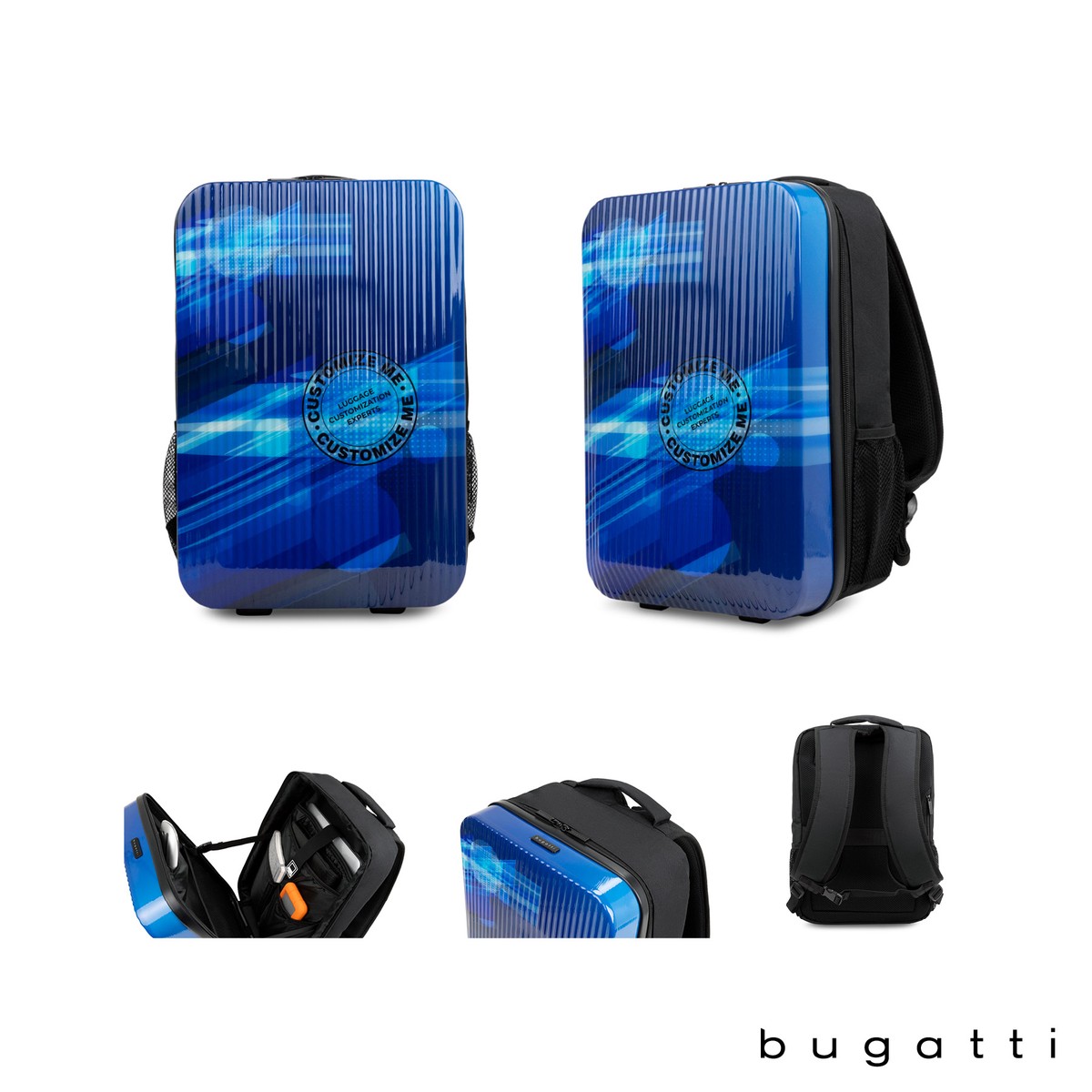The versatile Bugatti Customizable Squared Backpack is built for both style and sustainability, featuring a 100% customizable outer shell made from recycled PET plastic (RPET). Its lightweight ABS inner shell adds durability, while padded backing and adjustable shoulder straps ensure all-day comfort. Designed for organization, it offers multiple interior compartments, side mesh pockets for quick-access items, and a hidden back zippered pocket to keep valuables secure. With a top carrying handle and a dedicated compartment that fits laptops up to 15.6", its the perfect eco-friendly solution for school, work, or travel. Complies with Prop 65. 13 3/4" W x 18 7/8" H x 7 1/8" D