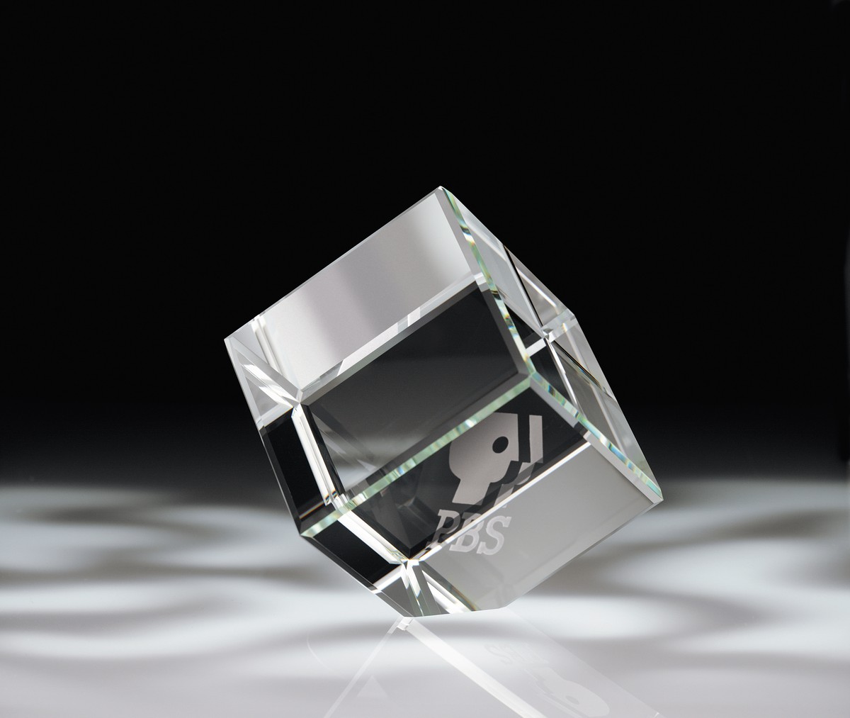 Large crystal corner block award. Complies with Prop 65. 4" W x 4" H x 4" D