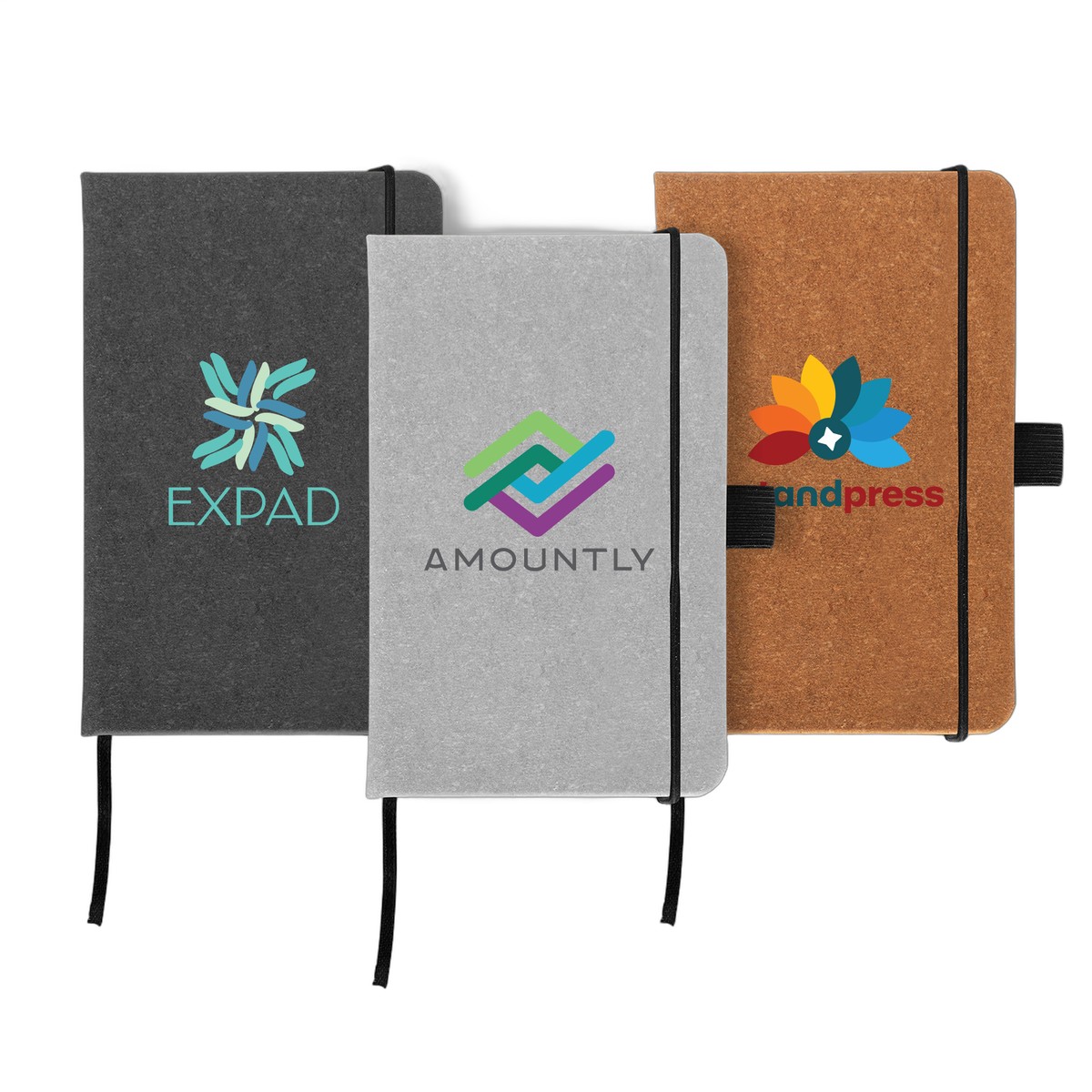 Earth-conscious clients will love our Carson Recycled PU Leather Notebook - its compact A5 size makes it ideal for jotting notes at home, at work, or on the go. The hard cover is made from 75% recycled leather and 25% plastic. Inside, the 80 sheets (160 pages) of 70 gsm renewable, recycled paper are ivory colored and lined. This stylish notebook features a ribbon marker, stitched binding, elastic strap and pen loop (pen not included). Your logo will be . Complies with Prop 65. 5.51" H x 3.54" W x 0.59" D