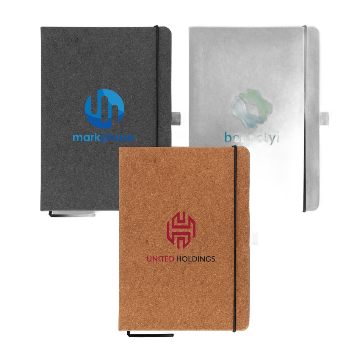Introducing our Carson Recycled PU Leather Notebook - it's ideal for journaling at home and meetings at work. The hard cover is made from 75% recycled leather and 25% plastic. the 80 sheets (160 pages) of 70 gsm renewable, recycled paper are ivory colored and lined recycled paper. This stylish notebook features a ribbon marker, stitched binding, elastic strap and pen loop (pen not included). Your logo will be . Complies with Prop 65. 8.27" H x 5.83" W x 0.59" D