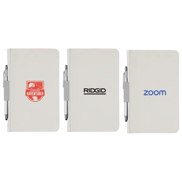 Catch your notes with the Chelsea notebook! The perfect notebook for the office or when you are on the go. Exclusively in white, this 80 sheet lined journal includes a grey-colored pen strap and coordinating stylus black-ink ballpoint pen. 8.25" H x 5.125" W