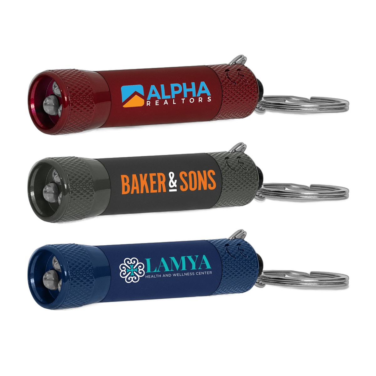 Customers will love the monochrome design and soft-touch barrel on this super-stylish and functional LED flashlight keyring. This 3-LED flashlight shines a bright white light, and includes a keyring to help keep this flashlight always at the ready, right when you need it. Includes 3 LR44 batteries. . Complies with Prop 65. 0.55" H x 2.70" W x 0.55" D