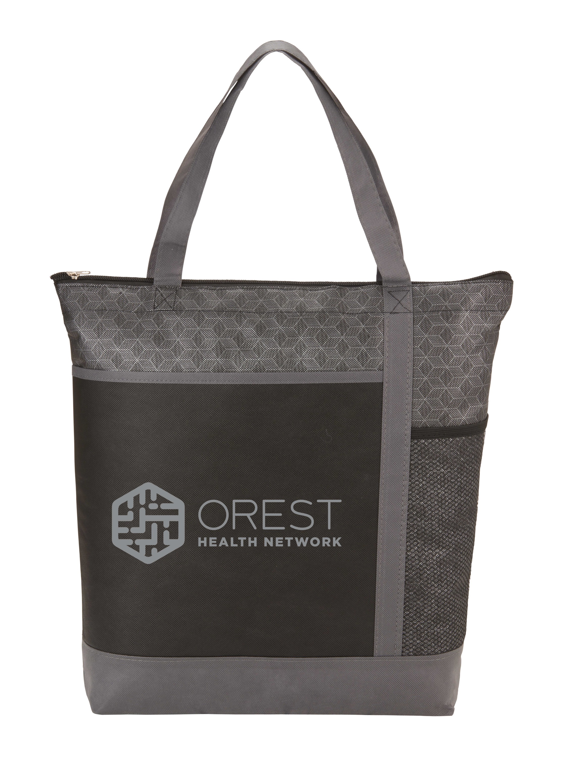 The Chrome Non-Woven Zipper Convention Tote is constructed from lightweight yet durable 80G polypropylene materials. It contains a spacious main compartment that zips shut to protect your belongings, plus a mesh side pocket perfect for storing cans or water bottles. This stylish non-woven tote bag is ideal for conventions, tradeshows, business meetings, and more. 4.50" D x 16.00" W x 16.00" H
