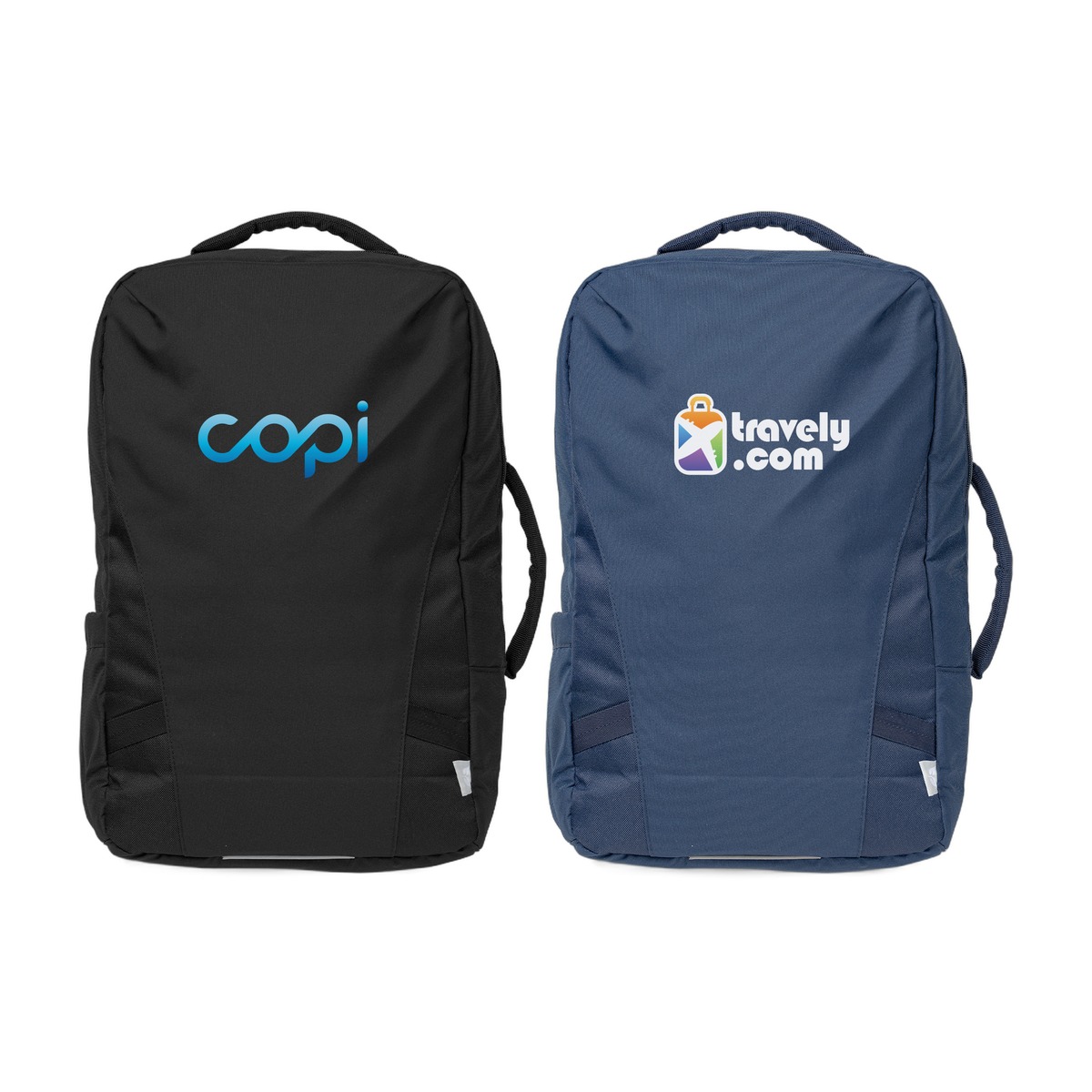 Designed to seamlessly integrate into modern life, the Coastal Threads™ Commuter Backpack redefines what a backpack can be, with a slim-profile design for simple commuting. The exterior is constructed with 300D Repreve® Our Ocean™ plastic threads, made from ocean-bound plastic bottles collected within 30 miles of waterways or coastal areas. The 210D rPET interior offers an organized oasis, with a padded laptop compartment, a dedicated tablet pocket, and an elastic strap organizer, offering intelligent spaces for tech essentials. Key features include: slim, single compartment design with padded laptop sleeve; dual padded grab handles; breathable, mesh-padded straps, backing & interior pockets; trolley/suitcase handle strap; hidden, zippered travel compartment; elastic side-pocket for drinkware or umbrella; reflective accents & multiple utility straps/hooks. Fits common laptop sizes including 13", 14", 15", 16" and 17". Complies with Prop 65. 17.72" H x 11.81" W x 5.12" D