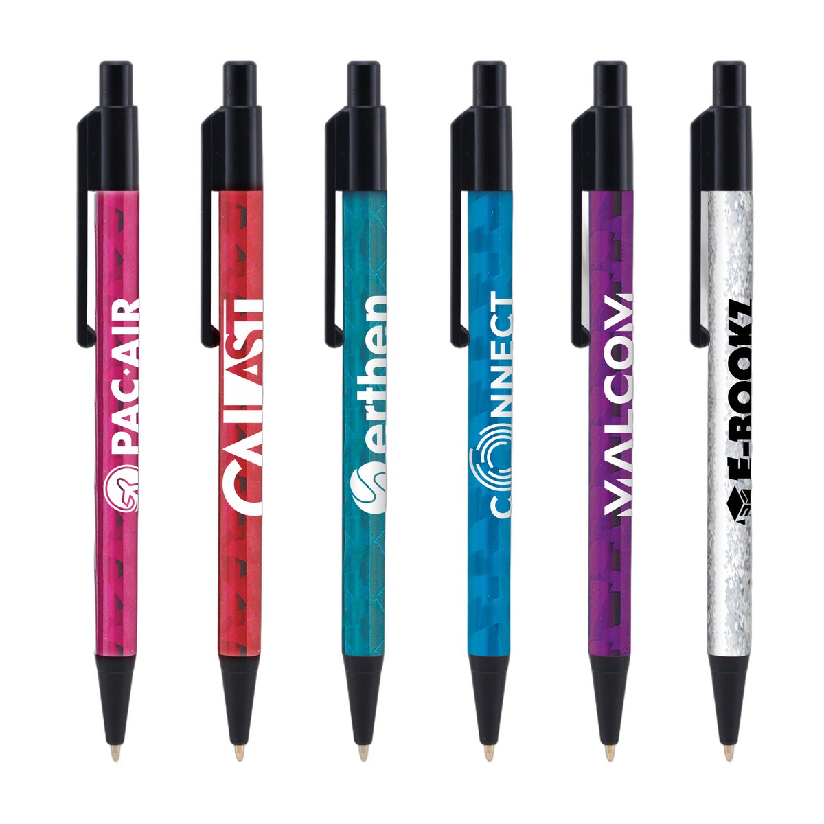 ***Temporarily unavailable.*** Colorama pen. Leave potential customers pleasantly surprised with a burst of color found in the Colorama! One of the industry's most popular and best value pens, it features our SimpliColor™ printing process, giving you one of the largest one to four color process imprints with virtually unlimited color options. This plastic pen comes with our gel-like Eversmooth® hybrid ink for a great writing experience in blue and black ink choices. Complies with Prop 65. 5.88" W x 0.37" D