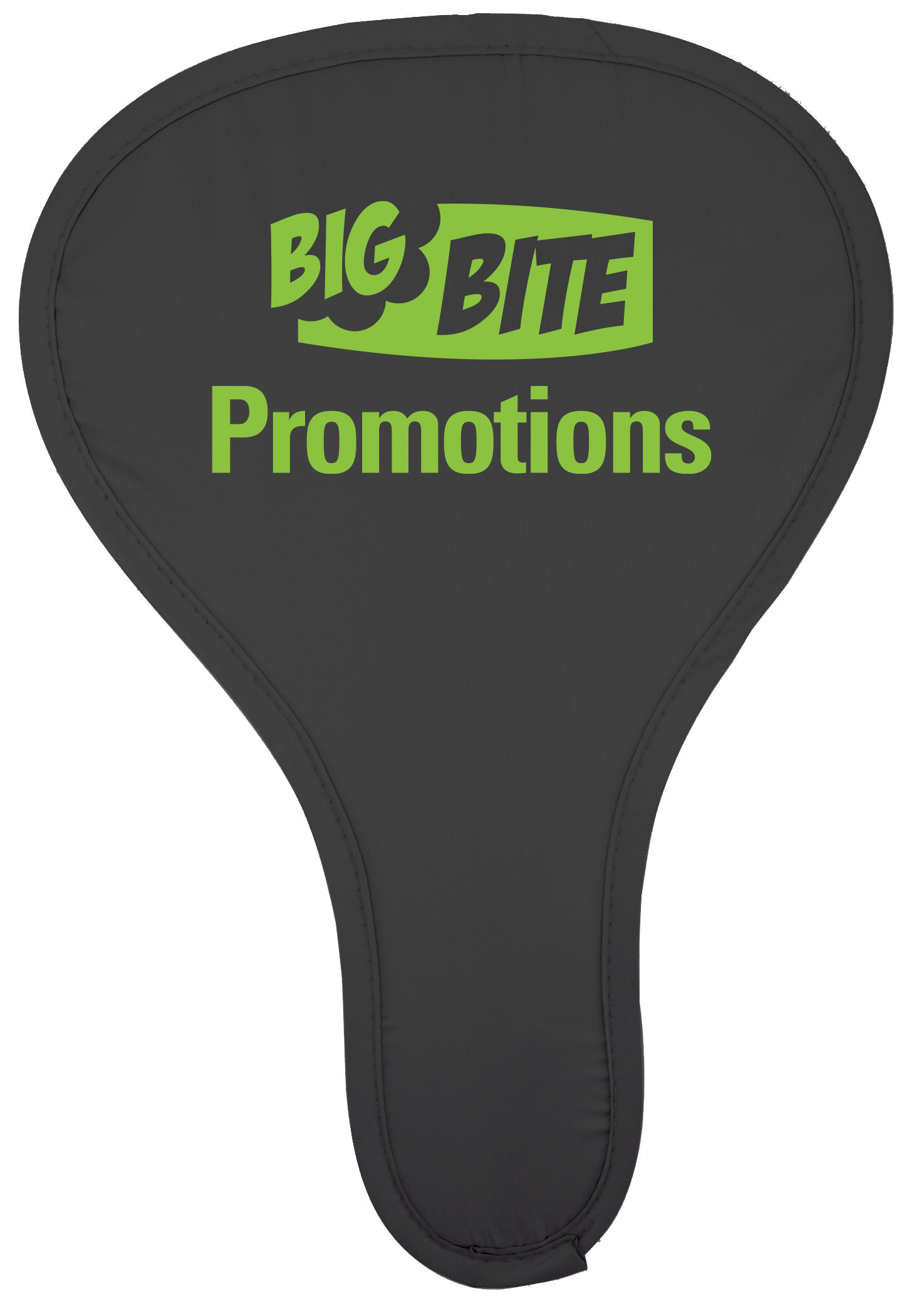 The Cyclone Fan is a foldable fan that remains closed with an elastic strap and has a color-changing feature. 13" H