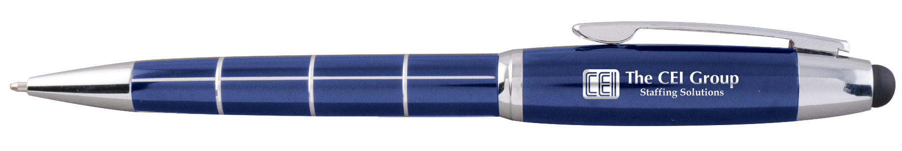 Tech details give this European executive stylus pen modern appeal. Deep enamel colors accented with chrome grid pattern. Smooth twist retraction and handy stylus tip. Material: Metal Standard Decoration Includes: Lasered, 1 Location All Available Decoration Options: Laser Engraved: 1.25" W x 0.25" H Barrel Revolution Engraving: 1.25" W x 0.5" H Barrel Tip Type: Ballpoint Mechanism: Twist Standard Packaging: Individually Cellophaned Tags: stylus pen, executive pen, popular, metal, tech, accessory, phone, tablet, gift, desk, office, executive, advertisement, college, grade, writing, merchandise, study, high school, pen, essay, list