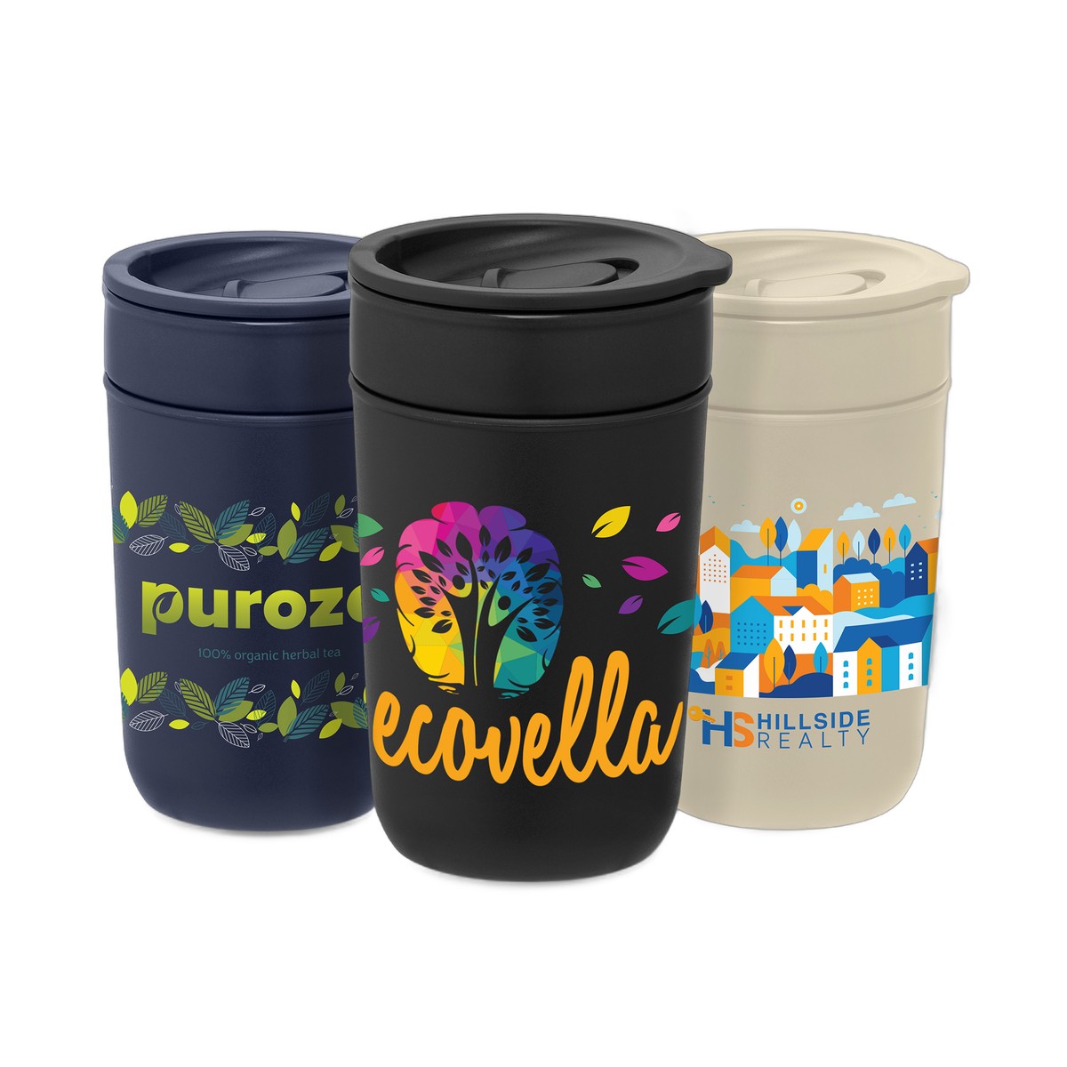 Our new Danube 12 oz. tumbler is a Goldstar exclusive! This stylish tumbler combines a ceramic inner with recycled plastic exterior and lid with easy thumb slide-top. Comes packaged in individual kraft gift box with recycled polypropylene polybag. . Complies with Prop 65. 5.91" H x 2.44" W