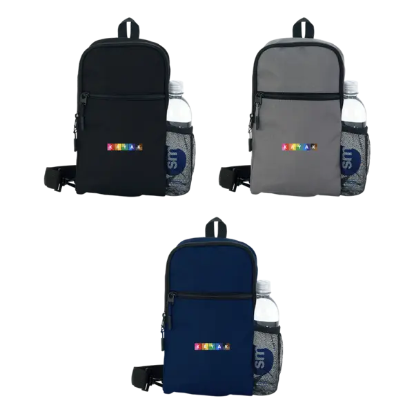 Get ready to meet your new favorite bag – the Daypack Recycled Sling Bag! Made from eco-friendly rPET fabric, this sling bag is both stylish and sustainable. It features a secure zipper closure main compartment for all your essentials and a zip front pocket for quick-access items. The side mesh pocket keeps your water bottle within reach, and the adjustable strap lets you switch sides with ease. Wear it on the front or back, depending on your mood! Plus, the top handle makes it easy to grab and. 12.75" H x 7" W x 3.25" D
