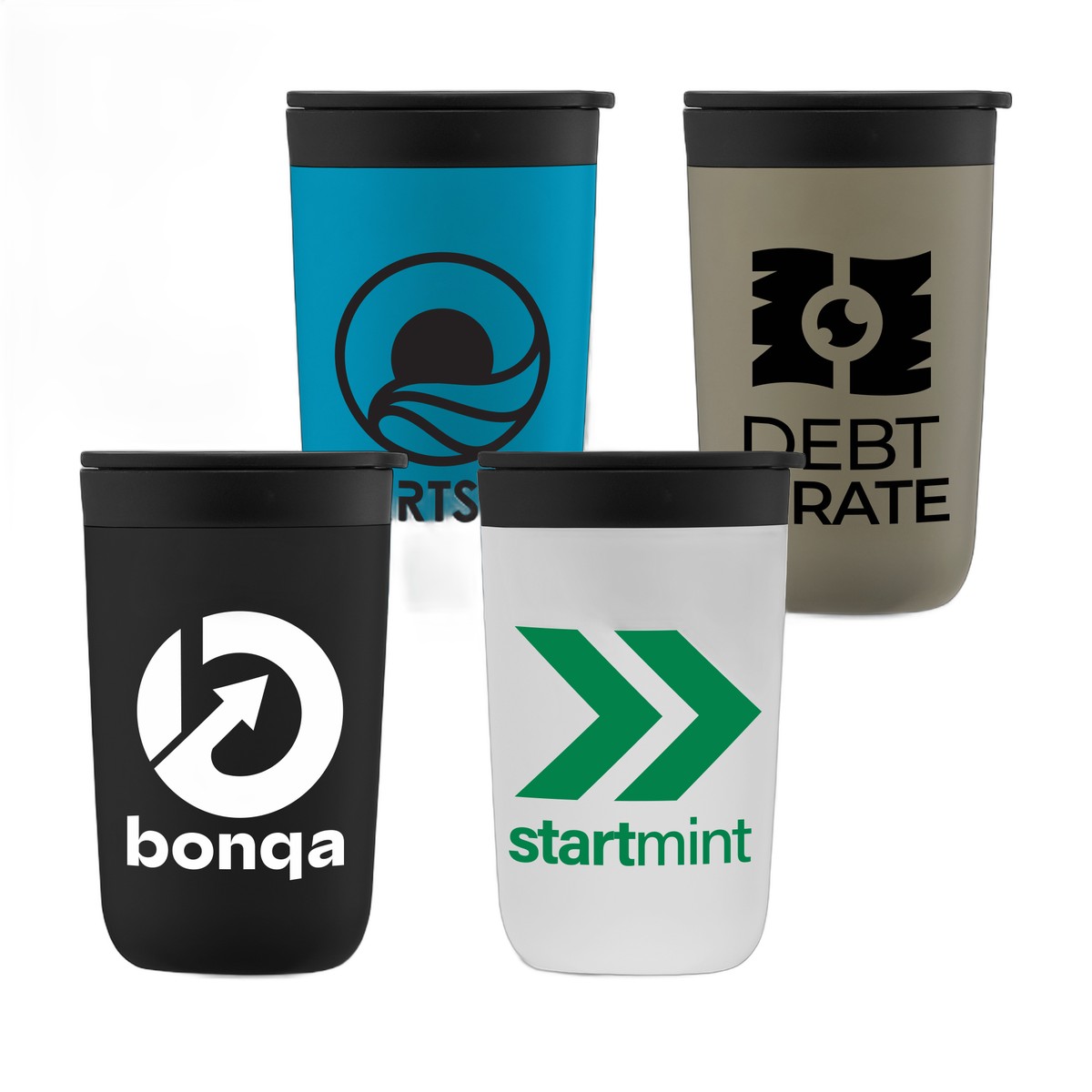 What a striking look! The Discovery 14-ounce Double Wall tumbler is made with innovative recycled materials to reduce waste. Air Insulation creates a highly portable leakproof cup, spreading the branding. Select from the bold, vivid colors of Black, White, Ocean Blue, and Sand. Logos will stand out in this highly-functional promotional marketing tool. Great for sporting events, tradeshows, conferences, and more! . Complies with Prop 65. 5.59" H x 3.46" W