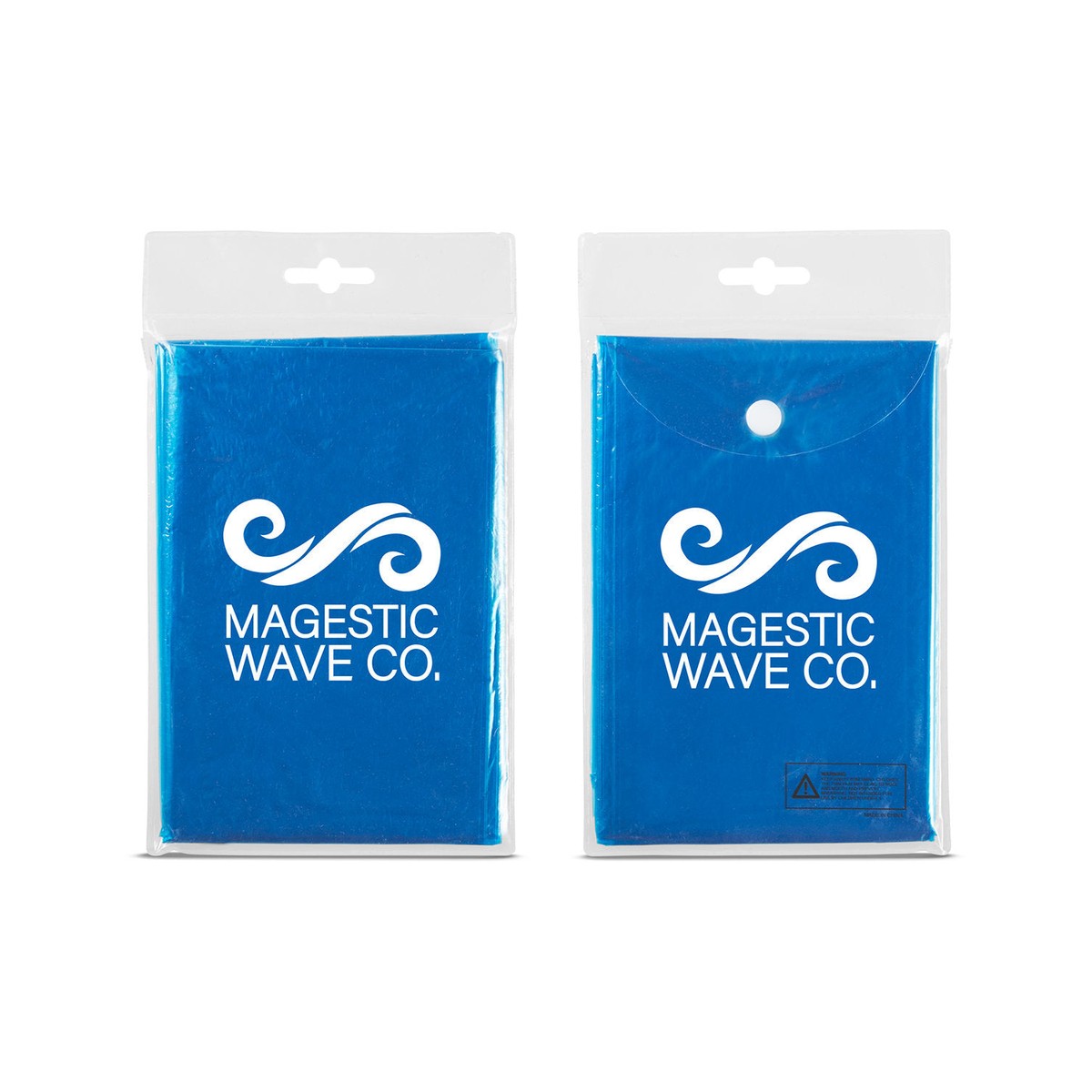 Disposable rain poncho with hood in compact pouch. Made of 0.15mm PE Plastic. One size fits most (adult-sized). Reusable, folds into 0.18mm PVC snap closure carry pouch (included). Imprint available on pouch only. Note: Poncho is reusable, but not designed for long term use, 2-3 uses each, approximately. WARNING: Keep away from small children. The thin film may cling to nose and mouth and prevent breathing. 5.0000" W x 7.0625" H