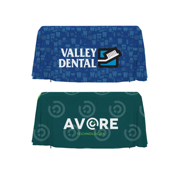 Let your table do the talking. Our 3-sided open back table throw brings big energy to your booth with full-color dye sublimation that lets your branding shine—loud, proud, and totally on point. Made from durable 300 denier poly poplin, it drapes beautifully in the front and sides while keeping the back open for easy access to storage, swag, or emergency snacks (we don't judge). Finished with clean, clear-thread serged edges for a polished look that's built to last, this table throw is your blank canvas for bold design, bright color, and show-stopping presence. Unlimited design possibilities? Yeah, we thought you'd like the sound of that. 48" W x 24" L x 28.5" H
