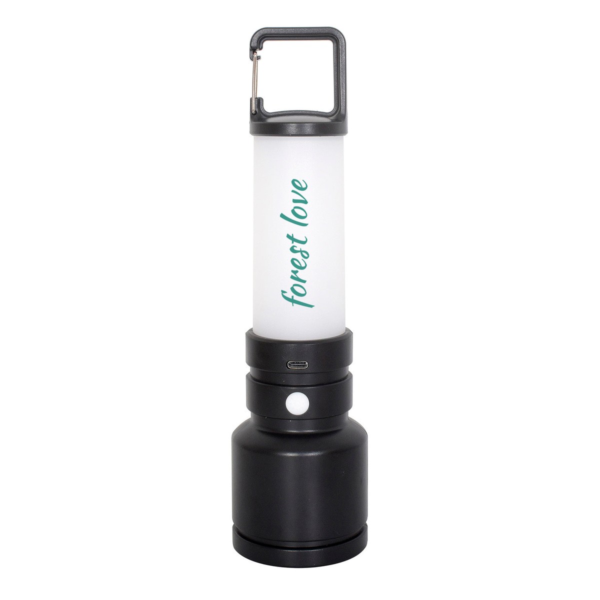 Glamping's best new buddy, this UL Certified partly recycled ABS Plastic flashlight and lantern is the perfect accessory to bring. This includes a 600 mAh rechargeable battery, a body light and lantern and carabiner hook. 1W LED and 8x warm SMD, the LED features 3 setting (High 100 /Low 28 lumens/Flash) and single setting (80 lumens). Type C charging cable included. Instructions via QR code. 9.3000" H x 2.4000" Diameter