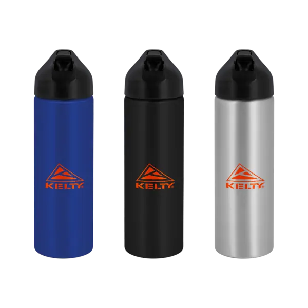 Stay refreshed with the EasyFlow Recycled Aluminum Bottle featuring a convenient press-down straw lid for quick, easy sipping. Designed for active lifestyles, this durable bottle includes a carabiner for effortless carrying or clipping onto your backpack. The wide opening ensures hassle-free filling of your favorite beverages, making it the perfect hydration companion for all your adventures.FEATURES- 20 oz capacity- Recycled Aluminum water bottle- Press down for Straw Lid-easy access- Easy Hand. 2.6" Diameter x 9.68" H