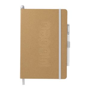 This Eco Color Bound JournalBook Set includes (2800-41) Eco Color Bound Journal and (6620-31) Ambassador Square Ballpoint pen. The Journal features a recycled paper hard bound cover, color accent painted edge pages, and color matching built-in elastic closure and pen loop. This specialty notebook includes a ribbon page marker, expandable accordion pocket, and 80 sheets of lined paper. Through a partnership with 1% For The Planet, one percent of sales are donated to environmental nonprofits. This item cannot be configured online. Contact us to order. Due to the nature of the material, there may be color variances. 8.5" H x 5.67" W x 0.55" D