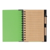 Boost your brand with the eco-friendly 5" x 7" spiral notebook and pen! This stand out spiral notebook has 80 lined pages ad features an elastic pen loop, elastic band closure, and a matching pen with a recycles paper barrel with a wooden clip. Available in a variety of colors, an imprint of your logo or company name will make a lasting impression. Choose this great giveaway for your next tradeshows, conventions, and even training seminars!