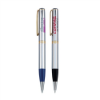 The Edda Chrome Ballpoint is a twist action pen. The solid brass barrel has a shiny chrome finish with a blue or black grip.