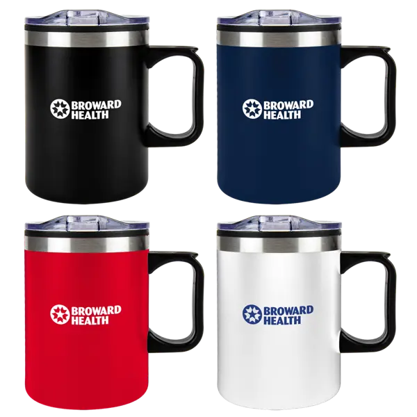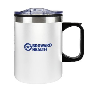 Mornings are hectic, but your coffee routine doesn't have to be. The Eden 14 oz. Travel Mug is designed for life on the move, featuring a sturdy handle for a secure grip and a slide-lock lid to keep spills from ruining your day. The stainless steel outer gives it a sleek, durable edge, while the plastic inner lining helps maintain the perfect sip temperature. Its matte powder-coated finish adds a modern touch, and since it's BPA-free, you can sip with confidence. Whether you're commuting, road-tripping, or just conquering your to-do list, Eden keeps your drink hot and hassle-free. 3" D x 4.5" H