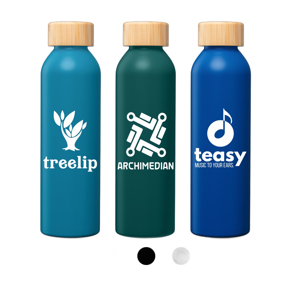 Our Eden Recycled Stainless Steel Water Bottle with Bamboo Lid is perfect for clients seeking to promote consciousness. The lightweight single-wall bottle is made from recycled 304 stainless steel and features a screw-on, leakproof lid with an FSC-certified bamboo top. A matte finish provides a clean, modern backdrop to showcase a brand message, logo, and more. Suitable for cold drinks only. BPA free and FDA approved. . 9.13" H x 2.60" W