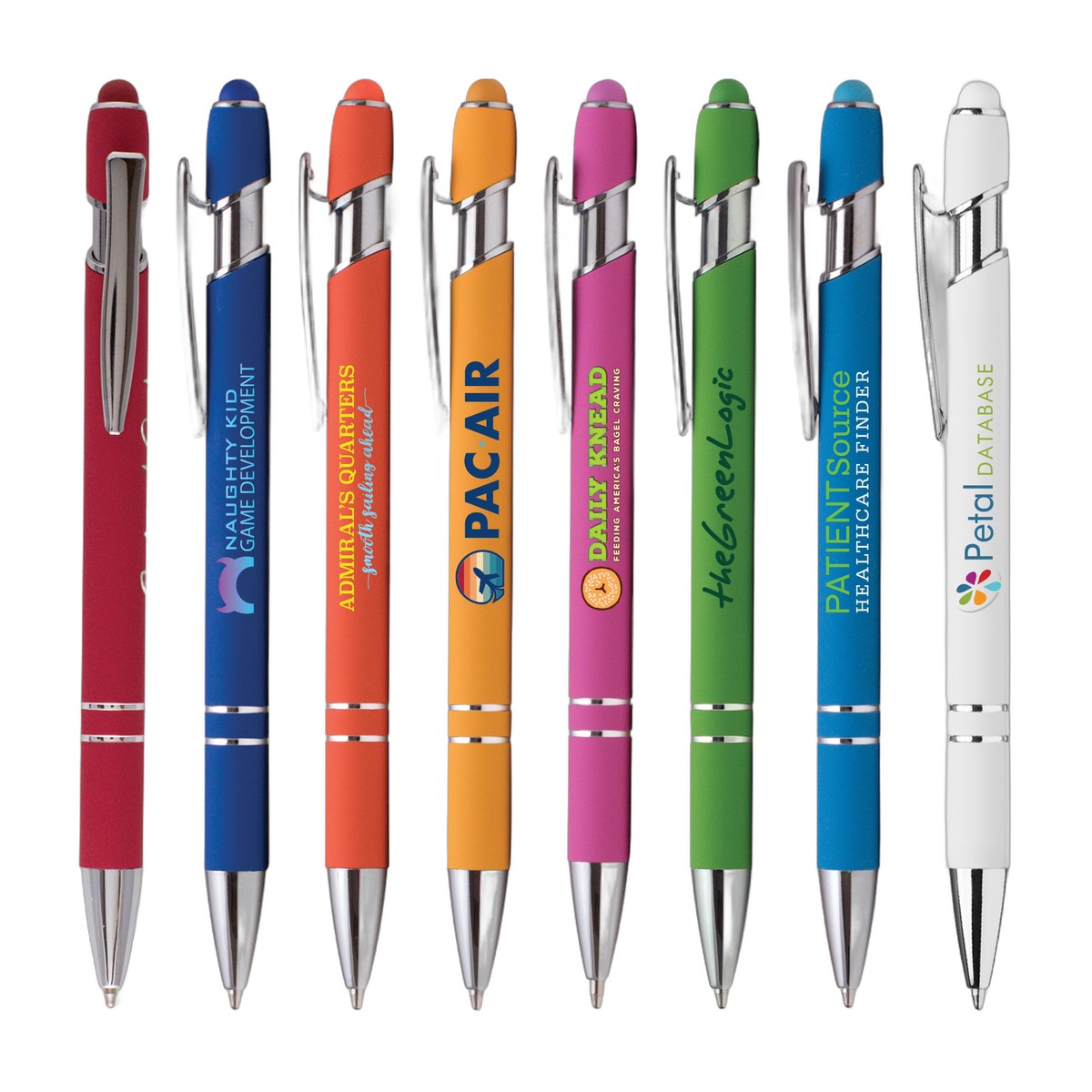 The Ellipse Softy Brights with Stylus is a stylish, premium metal pen with black ink medium ballpoint. Choose from a variety of bright, rubberized soft touch product colors to highlight your company name, logo or advertising information. Customize this pen using ColorJet, our full-color, photo-quality direct imprint process that makes it easy to show your brand's true colors. This colorful, classic promotional metal pen will be a favorite at conventions, trade shows, corporate events and more!