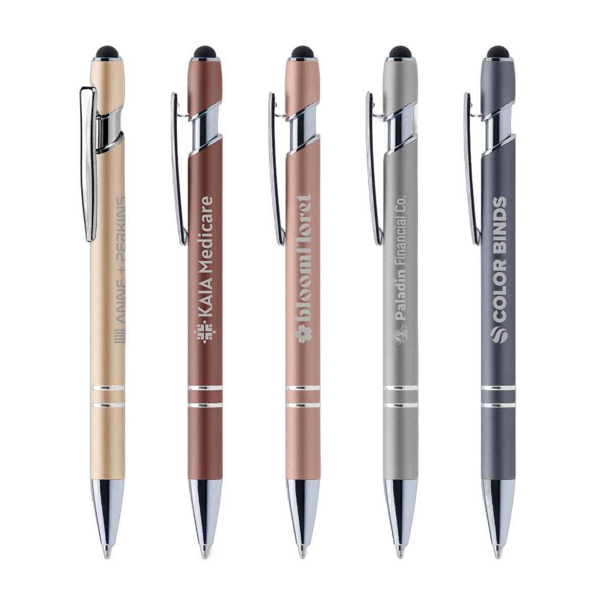 The Ellipse Softy Metallic is a stylish, premium pen available in a variety of metallic rubberized soft touch colors, with stylus that's perfect for touchscreens. Available in your choice of black or blue medium ballpoint ink. 5.61" W x 0.39" D