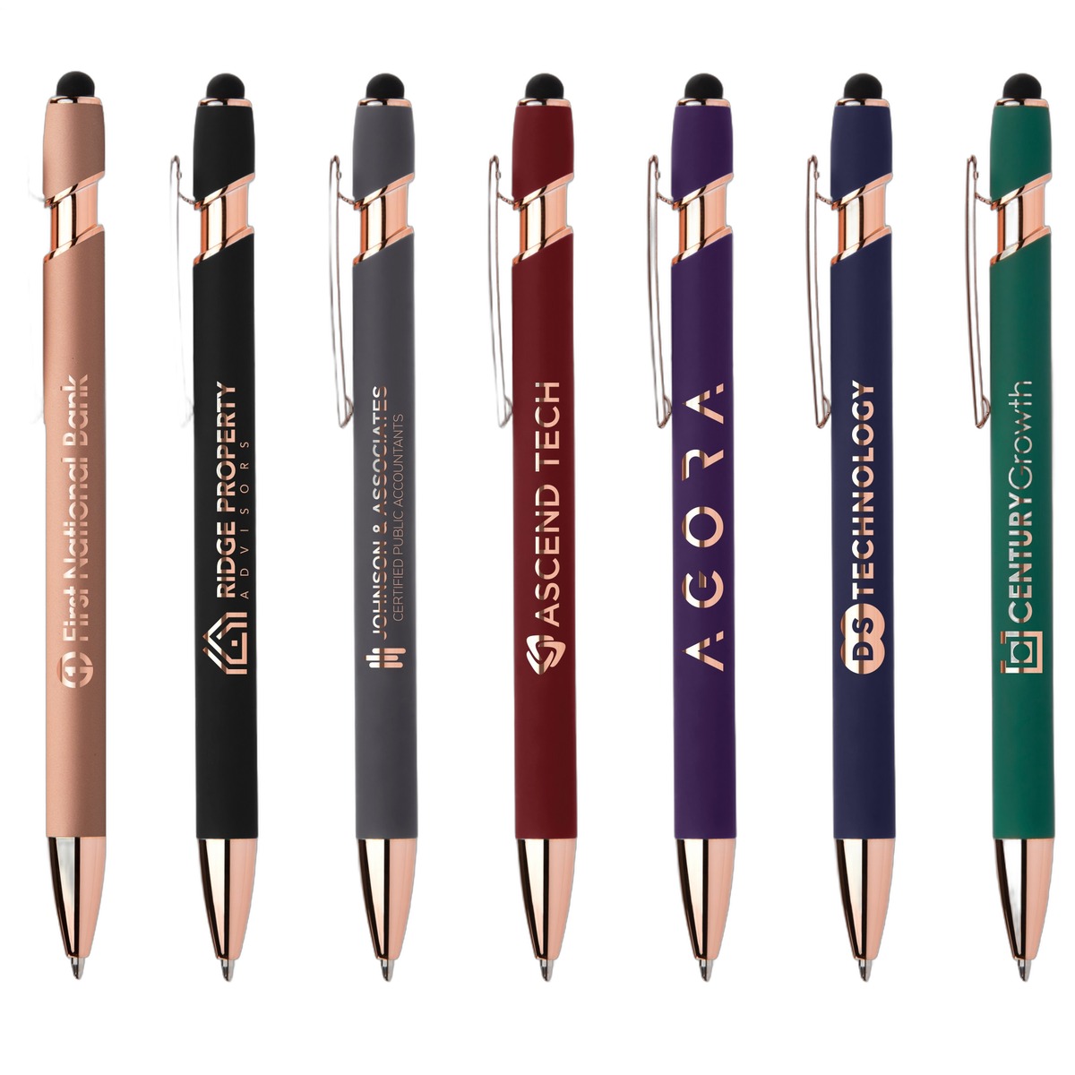 The Ellipse Softy Rose Gold Classic is a stylish, premium pen with trendy rose gold trim, available in your choice of black or blue medium ballpoint ink. Available in a range of top-selling classic barrel colors, all with rubberized soft touch finish plus a stylus that's perfect for touchscreens. Our precise rose gold mirror laser engraving will showcase your company name, logo or advertising information. This beautiful promotional pen will be a favorite of your customers! Complies with Prop 65. 5.63" W x 0.39" D