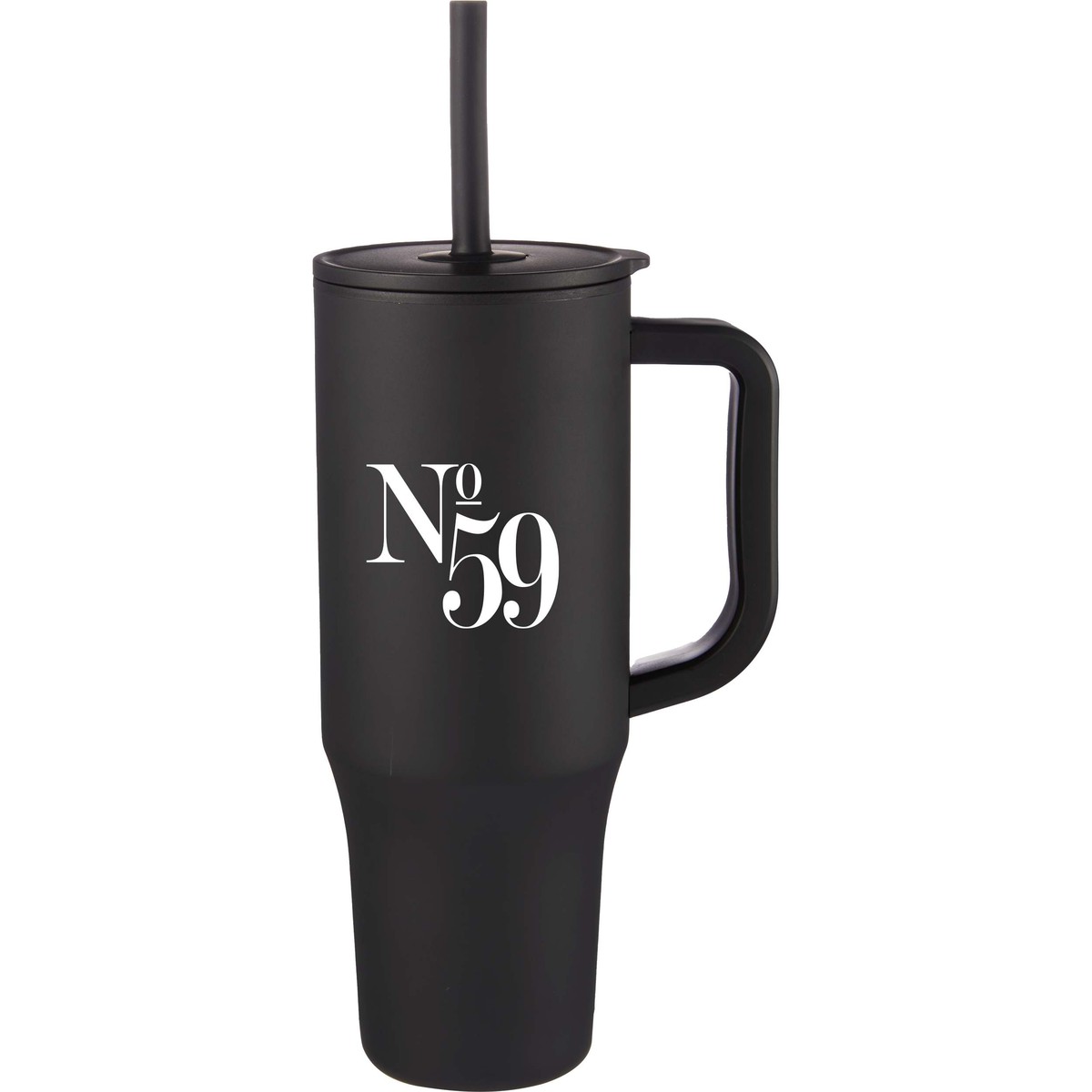 The Erie 30oz Eco-Friendly Straw Tumbler is designed to keep you hydrated throughout your day. It features durable double-wall construction to keep your beverages hot or cold in any environment. The integrated food-grade silicone straw is designed for easy reuse daily. The Erie has a 30oz capacity for fewer refills and features a slim base that fits into most cupholders, comfortable carry handle, and splash-proof press-on lid. It comes with the on-trend color drenching look. Hand-wash only. This product can hold hot beverages, but drinking hot beverages with the straw is not recommended. Remove lid to allow beverage to cool. 3.54" D x 5.10" W x 9.41" H