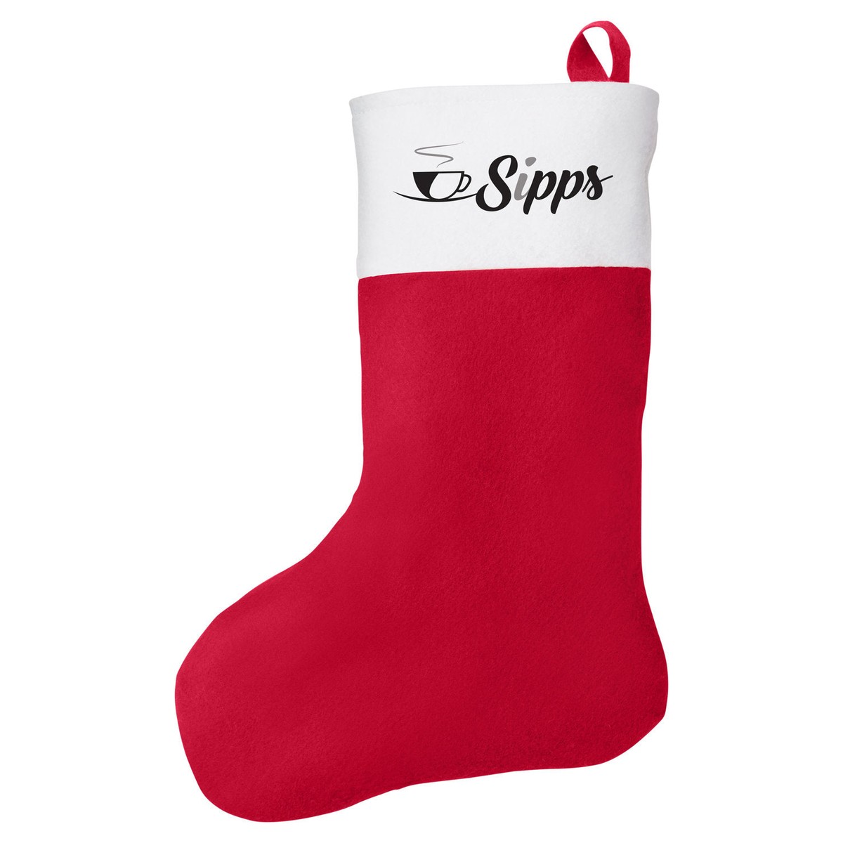 Polyester Felt holiday stocking. Perfect for hanging as a decoration or for wrapping gifts in a festive and fun way. Strap for hanging. Not intended as a child's or pet's toy. 10.5000" W x 16.0000" H x 0.2360" D