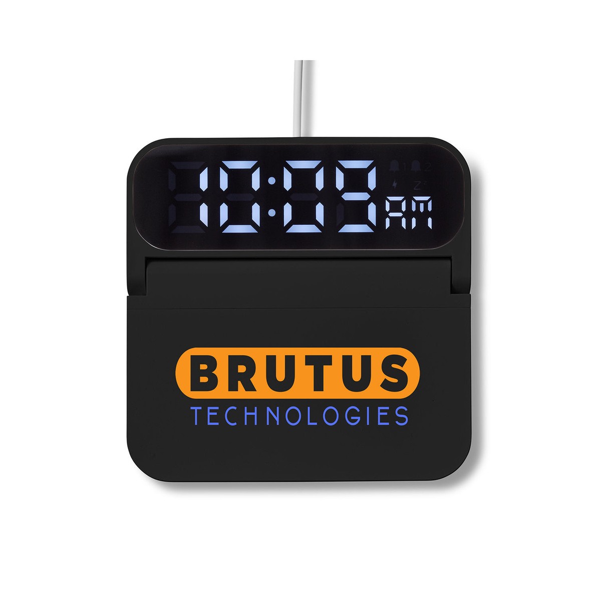 ABS Plastic digital alarm clock with wireless charger function (Fast Charge enabled). Retro design style features large digital clock display with 3 adjustable brightness levels and 2 alarm settings. Compatible with most phones that support wireless charging. It is recommended to check your device specifications before purchasing to ensure compatibility. Supports fast charging up to 15W when paired with any 20W+ or PD wall adapter. Power/Technology: Wireless Output: 5W/7.5W/10W/15W. NOTE: In order to achieve fast charge, this device must be powered by a PD20W (or above) or QC2.0 adapter. Novel imprint area for full color designs. Note: Most cases must be removed from phone for wireless charging to work. Uses 1 button cell battery (type CR1220), included and replaceable, for memory function. Includes instructions and USB A to USB C charging cable. Item size listed for item when flat, in use item measures: 5.5"W x 2.5"H x 3.5"D. 5.5000" W x 5.5000" H x 0.6250" D