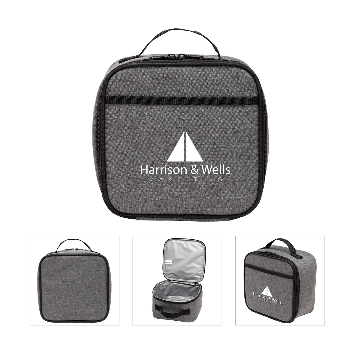 The Fremont Lunch Cooler is compact and easy to carry with its top carry handle. Made from durable two-tone 300D polyester and an interior lining made of food-grade PEVA it is the perfect size to hold a sandwich, some veggies and more, or it can hold up to 4 cans. The heat sealed interior is easy to clean and the additional padding helps keep the contents cold or warm for longer. The Fremont also features a front slip pocket. Complies with Prop 65. 8" W x 4 1/2" H x 8" D