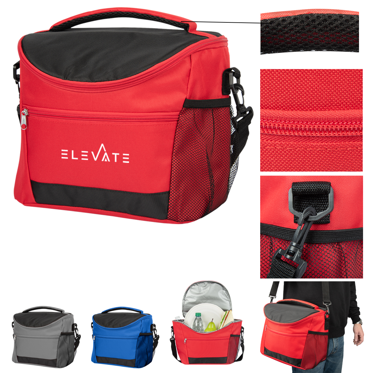 Made Of High-Density 600D Polyester. 12C Silver PEVA Lining with 4MM PE Foam. Double Zippered Main Compartment. Detachable/Adjustable Shoulder Strap And Padded Carrying Handle. Complies with Prop 65. 7" D x 11.75" W x 10" H