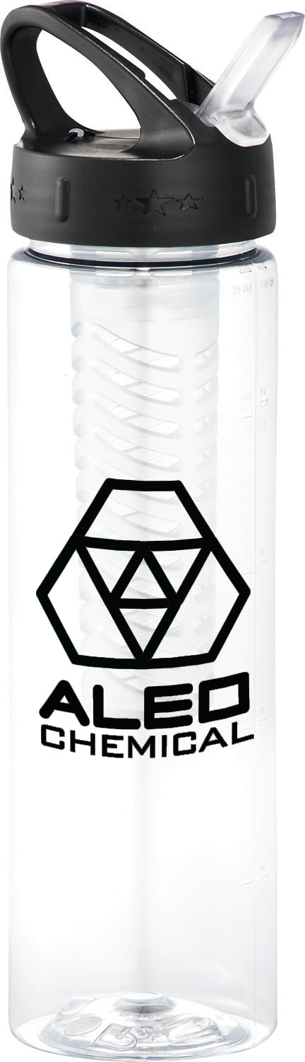 The Bullet Fruit Infuser is made in the USA, BPA-free 25oz sports bottle with a flip-top drinking spout. It includes a twist-on fruit infuser lid to add flavor to your favorite drink, plus convenient ounce markings printed right on the bottle for easy measuring. This item is phthalate-free, lead-free, non-toxic, and FDA-compliant. The Bullet Fruit Infuser Sports Bottle 25oz is hand-wash only. 2.75" W x 9.00" H