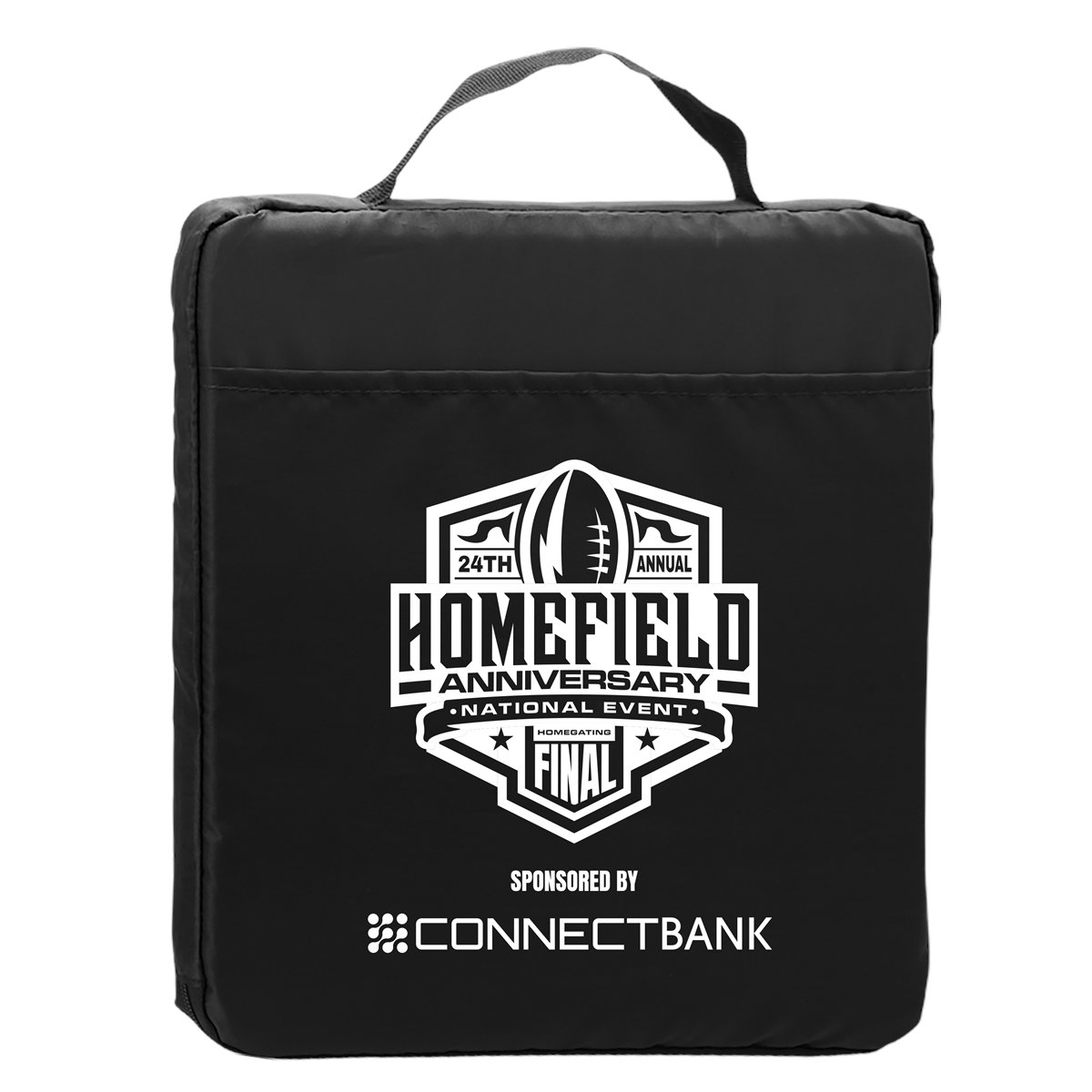 Cheer on your team in comfort with this 1.5" thick polyester fabric stadium cushion. It features a convenient front program pocket for quick storage and a built-in handle for easy carrying. It?s a must-have for sporting events, concerts, or outdoor activities. 13.5" W x 1.5" H x 13.5" D