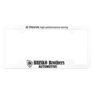 Hit the road with a promotion that goes the distance! This durable license plate frame is made from high-impact plastic and features an oversized imprint area to showcase your brand in style. Built-in retaining clips and two pre-drilled fastening holes keep everything secure. Customer is responsible for the fit of the frame to ensure the style does not cover registration stickers or other important information. Complies with ANSI, CPSIA, Prop 65. 6.3125" W x 0.25" H x 12.4375" D