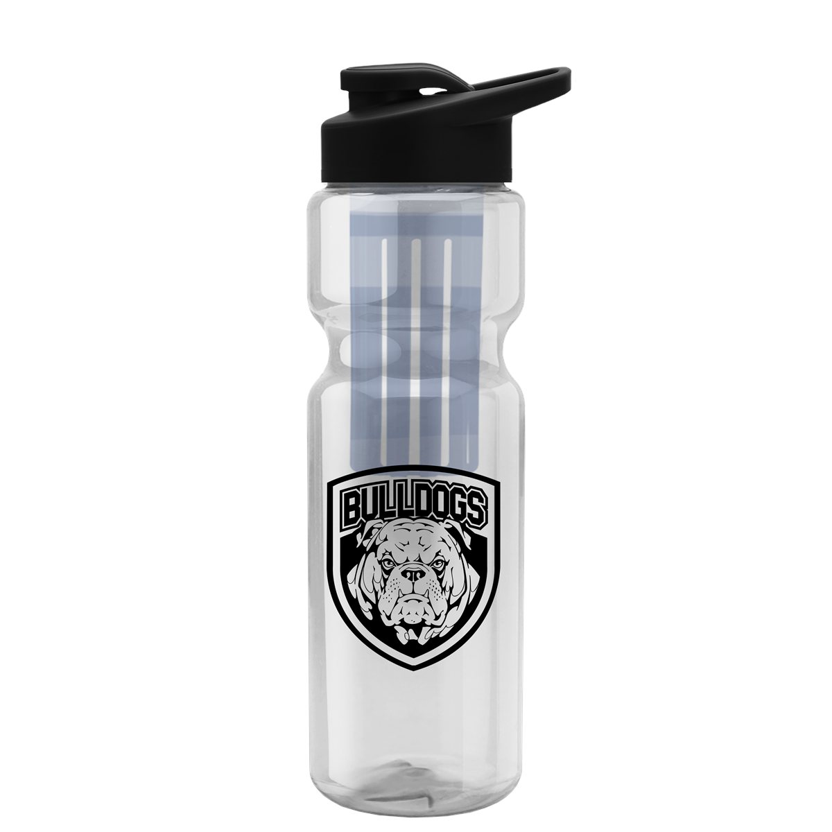 This classic 28 oz. sport bottle features a drink-through lid with an infuser that can hold fruits, herbs, or vegetables to provide a fresh flavor to water. Its contoured design offers a secure grip, and it fits standard bike cages and most cup holders, making it the perfect companion for workouts, commutes, or weekend adventures. With mix-and-match bottle and lid color options, it?s easy to create a standout piece for any promotion. Complies with ANSI, CPSIA, FDA, Prop 65. 2.875" W x 10" H x 2.875" D